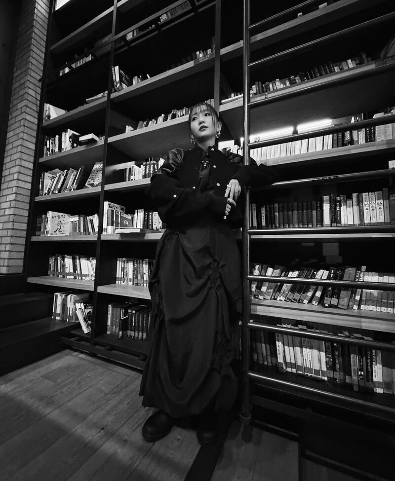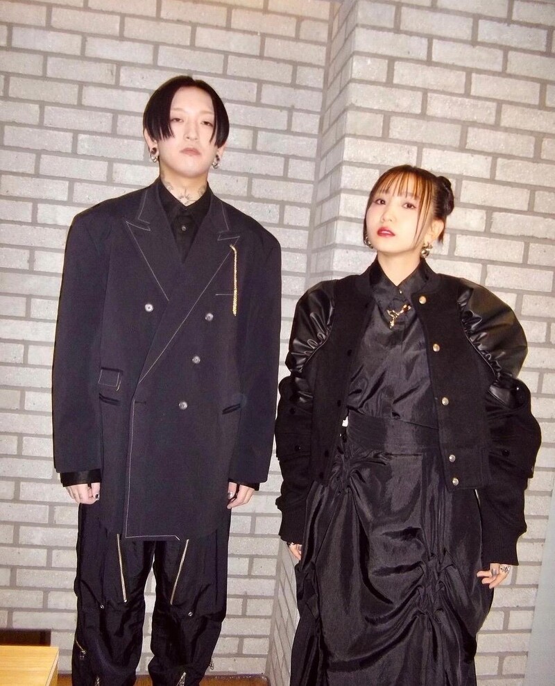 跨年当晚的红白舞台上,YOASOBI团员两人以全黑造型互相搭配,女主唱Ikura穿着特殊抓褶设计的黑色连身裙,外罩战甲风格的大宽肩外套,特别有型又充满日式风味。